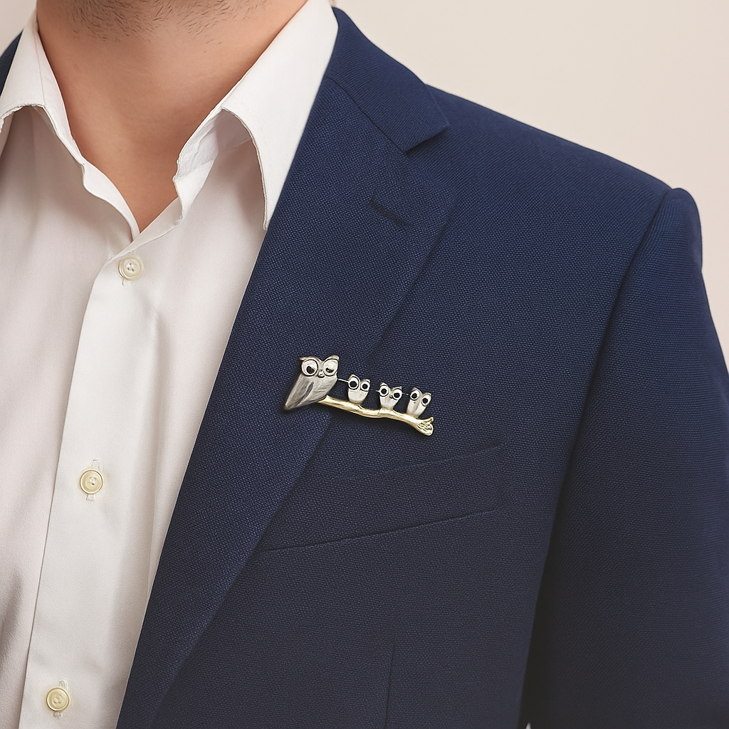 925 Silver Owl Family Brooch – Elegant Nature-Inspired Pin